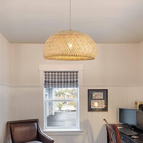 $29.99QGZXW 11.8″ Handwoven Bamboo Rattan Pendant Light – Adjustable Boho Farmhouse Ceiling Fixture