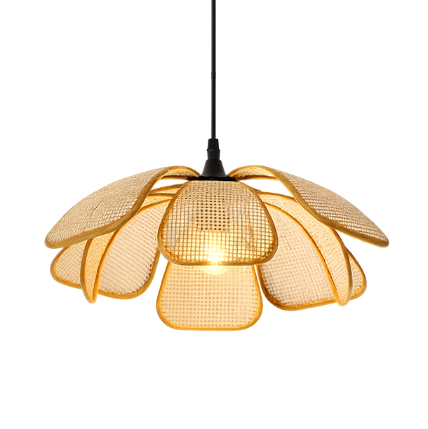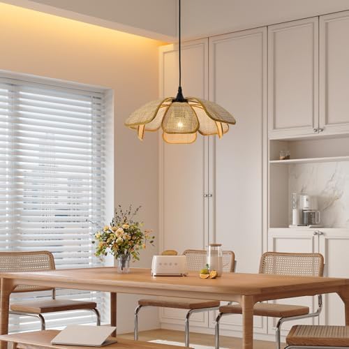 $89.99QGZXW 17″ Boho Rattan Petal Pendant Light – Handwoven Bamboo Farmhouse Hanging Fixture