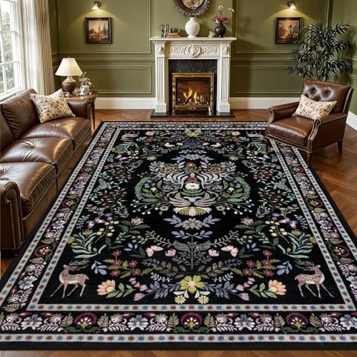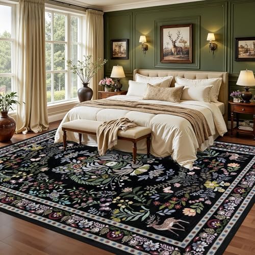 QGZXW 8×10 Vintage Floral Washable Rug