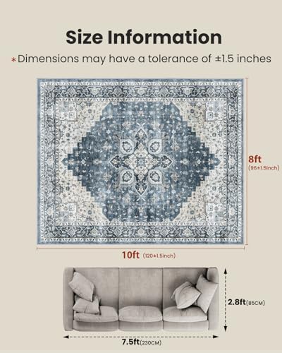 QGZXW 8×10 Blue Vintage Washable Rug