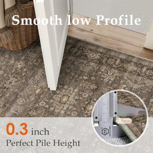Functional 8×10 Rug: Ideal for busy areas, the WondRg 8×10 brown rug's low-pile construction works well in hallways, bedrooms, living rooms, bathrooms, and as an indoor door mat. Its versatile size and practical design offer both style and functionality |