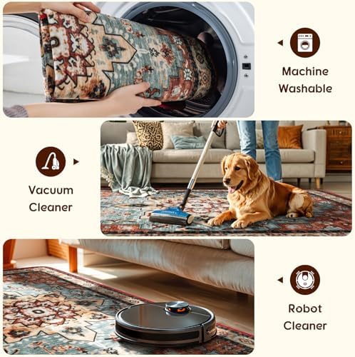 Designed for easy maintenance, this washable rug resists dust buildup and everyday messes. It can be cleaned with a vacuum, broom, or damp cloth for routine care. The rug is machine washable for deeper cleaning. For larger 8×10 sizes, using a commercial or heavy-duty washing machine is recommended for best results.