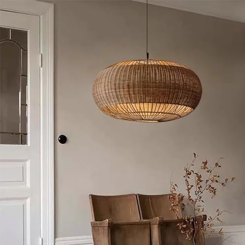 Bring natural texture and warm ambiance into your space with the QGZXW Handwoven Rattan Pendant Light. Expertly crafted from natural rattan, this beautifully woven drum-style hanging lamp blends simplicity with rustic charm, making it a perfect addition to both modern and vintage interiors.