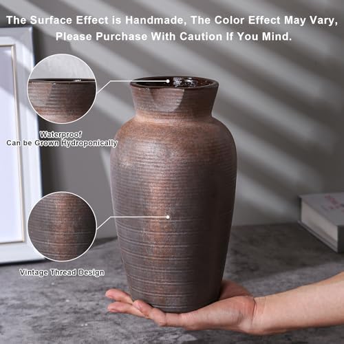 QGZXW Rustic Terracotta Farmhouse Vase 10.9 Inch