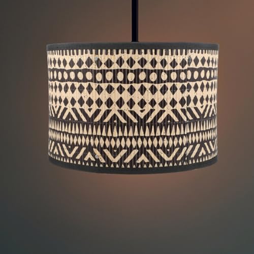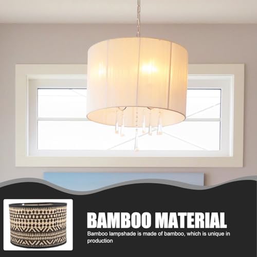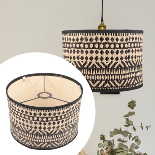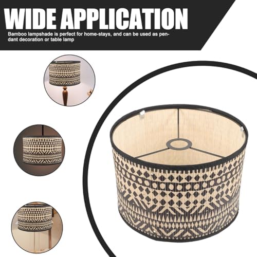 QGZXW Vintage Printed Bamboo Drum Lamp Shade – 11.8″ Decorative Pendant & Table Lamp Cover